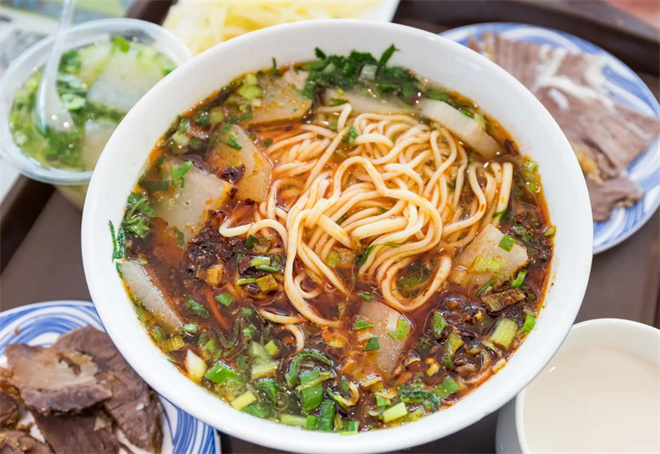 喬麥棱牛肉面面條非常的講究,選用的是日本配制的且在無菌的條件下進行生產的面粉,含有豐富的蛋白質,口感十分的新鮮爽口。喬麥棱牛肉面是從清代一直流傳至今的特色美食,特色為湯清、味濃、入口醇香,面條筋道、有彈性、入口滑爽,色澤鮮亮、香氣撲鼻,營養搭配合理、符合人體所需是名符其實的中式營養快餐,是擁有民俗、民風的特色美食品牌。